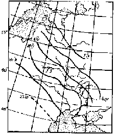 Считалось, что эта неравномерность проявляется, в основном, благодаря особенностям рельефа, а на равнине, вдали от гор и морских побережий, изофены будут идти более или менее равномерно. Но еще А.А. Браунер установил, что одни и те же виды прилетают на севере Украины раньше, чем в Бессарабии и Причерноморье. Это связывалось с миграцией их по разным пролетным путям (Пузанов, 1957). Г. Гроте обратил внимание на то, что в Аскании-Нова птицы появляются на 2 недели позже, чем на Черноморском побережье и на Днепре, где пролетет основная масса водоплавающих (Соколов, 1926). К. Бречер (1935) установил, что кукушка в Средней Европе быстрее продвигается вдоль рек, даже на равнине. У. Сливинская (1938) пишет, что ход изопиптез может зависеть не только от особенностей ландшафта, но и от пути пролета птицы. Постепенно с появлением более крупномасштабных фенокарт эта мысль углубляется и развивается. На картах С.И. Хомченко (1972) по прилету кукушки (Cuculus canorus) на юге Западной Сибири изофены образуют глубокие выступы, которые он называет "путями проникновения" (рис. 2). М.А. Родионов (1978) писал, что птицы вырываются вперед по экологическим руслам пролета. И, наконец, В.В. Серебряков (1978) предложил определять по авифенологическим картам пролетные пути.