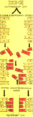В 1953 году была расшифрована структура ДНК (Ф.Крик, Д.Уотсон). Расшифровка структуры ДНК показала, что молекула ДНК состоит из двух комплементарных полинуклеотидных цепей, каждая из которых выступает в качестве матрицы для синтеза новых аналогичных цепей. Свойство удвоения ДНК обеспечивает явление наследственности.