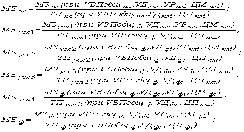 МЗусл2 = ∑ (VВПфi * УРплi * ЦМплi);