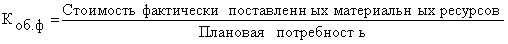 В процессе анализа необходимо проверить обеспеченность потребности в завозе материальных ресурсов договорами на их поставку и фактическое их выполнение. Степень обеспечения предприятия материальными ресурсами оценивается с помощью коэффициентов обеспечения. Проверяется также качество полученных от поставщиков материалов, соответствие их стандартам, техническим условиям и условиям договора.