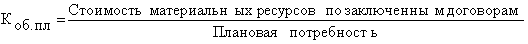 Реальная потребность в завозе материальных ресурсов со стороны - это разность между общей потребностью в определенном виде материала и суммой собственных внутренних источников ее покрытия. Степень обеспеченности потребности в материальных ресурсах договорами на их поставку оценивается с помощью следующих показателей:5
