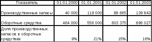 Для трехлетнего периода это небольшое значение (минимальный размах вариации производственных запасов только за один год был равен 57%).
