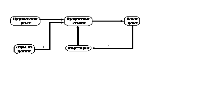 На рис. 3 представлена схема т.н. инновационного развития экономики. В момент перехода от депрессии к оживлению на рынке появляется большое число разнообразных нововведений: товаров, услуг, технологий, ресурсов или иных рынков сбыта. Их появление можно объяснить по крайней мере двумя причинами: первая - предпринимательская активность направлена на поиск новых ориентиров развития, так как прежние цели уже достигнуты; вторая - старые производства, ранее подавлявшие конкурентов, не могут этого делать, так как сами находятся в тяжелом положении. Возможна и третья причина - она состоит в низком, по отношению к общей прибыльности производства в период депрессий, риске нововведений.