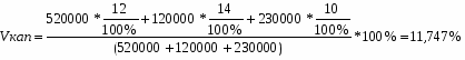 1. Середньовагова вартість капіталу підприємства розраховується за формулою: