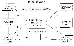 1 — заключение контракта; 2а, 26 — регистрация контракта; За — покупка контракта; 36 — продажа контракта; 4а — выплата расчетной палатой покупателю разницы в ценах на 10 февраля 1994 г. по сравнению с 10 ноября 1993 г.; 46 — уплата продавцом разницы в ценах на 10 ноября 1993 г. по сравнению с 10 февраля 1994 г.