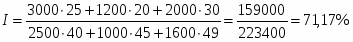 3) Среднее значение по предприятию в целом рентабельности продукции определяется как средняя арифметическая взвешенная по формуле: