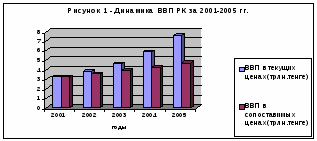 Таблица - 1 Показатели динамики ВВП РК за период 2001 – 2005 г.г.