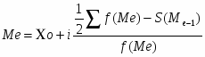 Для интервального ряда медиана рассчитывается по следующей формуле: