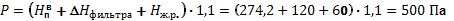 По рис. 26 [1] по диаметру выхода форсунок d = 5 мм и производительности одной форсунки q = 918 кг/ч определяем избыточное давление перед форсунками: P = 4,5 атм.