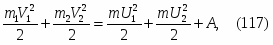 m1V1+m2V2=(m1=m2)U. (6)