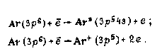 Далее повторные соударения с электронами приводят к образованию возбужденных ионов с электронными конфигурациями Зр^р и