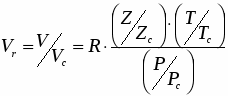 в котором коэффициент сжимаемости коррелирован с приведенной температурой () и приведенным давлением ().