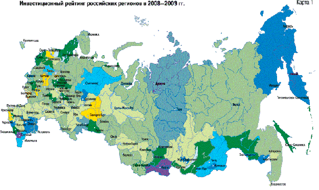 Инвестиционный рейтинг регионов России составлен по материалам РА "Эксперт" за 2008-2009г.