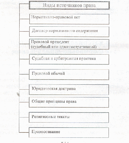 В мировом юридическом пространстве известны следующие виды источников права в специальном юридическом смысле (рис. 1.1):