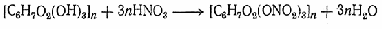 3. Получение нитрата целлюлозы, часто неправильно получаемые этерификацией целлюлозы смесью азотной и серной кислот где серная кислота служит водоотнимающим средством: