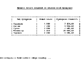 – выдача сведений о суммарной стоимости и суммарном выпуске каждой продукции;