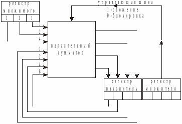 Рассмотрим схему устройства, которое позволяет реализовать такой способ умножения (рис. 15.21).
