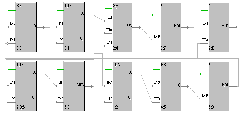 FBD-програма відкриття – закриття клапанів регулюючих органів подачі газової суміші і виходу збідненої газової суміші. .