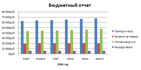 202.Нажмите клавишу Del. Столбики с расходами исчезнут из диаграммы.