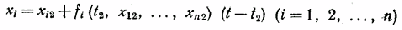 причем t0, xi0 (i=1, 2,…, n) называются начальными значениями для решения x1(t), …, xn(t), а эти условия – начальными условиями. Если ввести в рассмотрение (n+1)-мерное пространство с координатами t, x1,…, xn, то совокупность n функций xi=xi(t) будет представлять линию в n-мерном пространстве. Начальные значения t0, x10,…, xn0 представляют собой точку в этом пространстве.