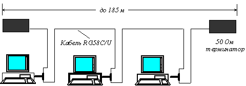 Рис. 11. Пример сети Ethernet, состоящей из сегментов