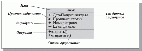 Рис. 2. Элементы и отношения между ними на диаграмме классов