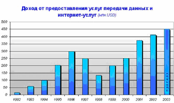 Порог в 10% населения характеризует массовое использование любой новой технологии. Это же относится и к росту пользователей Интернета, и к росту числа регистраций новых доменных имен. Согласно последним данным Россия близка к этому порогу по числу пользователей Интернета, более того, в Москве этот порог уже преодолен. В России по состоянию на март 2004 г. насчитывалось 14 млн. пользователей Интернета. Это свидетельствует о том, что Интернет становится массовым явлением в России.