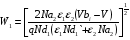 Ширину обедненного слоя (W) в каждом полупроводнике и барьерную емкость (С) можно найти решив уравнение Пуассона для резкого перехода с каждой стороны границы раздела. Одним из граничных условий является непрерывность электрической индукции на границе раздела, т.е. ε1E1= ε2E2. В результате имеем: