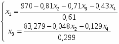Выразим переменную x4 через x3 и подставим во все выражения.