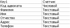 Таблицы "Адвокаты" и "Клиенты" заполняются непосредственно в MS Access, так как данные в этих таблицах не должны быть доступны для служащих юридической конторы.