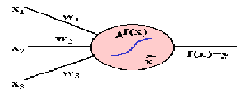 Прототипом для создания нейрона послужил биологический нейрон головного мозга. Биологический нейрон имеет тело, совокупность отростков - дендритов, по которым в нейрон поступают входные сигналы, и отросток - аксон, передающий выходной сигнал нейрона другим клеткам. Точка соединения дендрита и аксона называется синапсом. Упрощенно функционирование нейрона можно представить следующим образом (рис.1.2):