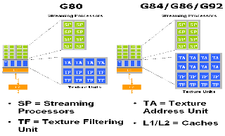 Подсистема памяти на GeForce 8600 GT/GTS представлена четырьмя микросхемами GDDR3 (с 32-битной шиной) объемом 512 Мбит каждая. Для версии GT номинальная частота равна 1400 МГц, для GTS — 2000 МГц.Графический чип GeForce 8500 GT может похвастаться лишь одним функциональным блоком, который состоит из 16 потоковых процессоров и 4 TMU. Ядро содержит 210 млн. транзисторов. Номинальная частота чипа равна 450 МГц, потоковых процессоров — 900 МГц. Блоки ROP и шину данных оставили без изменений. На видеокартах используются 8 микросхем DDR2-памяти (с 16-битной шиной) объемом 256 Мбит каждая. Частота памяти составляет 800 МГц. Основным преимуществом чипов G84 и G86 стал встроенный видеопроцессор PureVideo HD. Он использует BSP-движок, который берет на себя основную нагрузку по декодированию таких видеоформатов, как H.264, VC-1, MPEG-2 с разрешением до 1920x1080 и битрейтом до 40 Мбит/с. На практике получается следующее: воспроизведение дисков Blu-ray и HD-DVD с применением программного декодирования загружает процессор на 90-100%, видеокарты предыдущего поколения снижают этот показатель до 60-70%, в случае с GeForce 8500/8600 обработка видео отъедает лишь 20% процессорного времени. Поддержка внешних интерфейсов у GeForce 8500/8600 теперь встроена в графическое ядро платы. В случае с GeForce 8800 этим занимался чип NVIO. GeForce 8600 GTS оснащена двумя выходами Dual-Link DVI-I c поддержкой HDCP. Кроме того, возможно появление моделей с разъемом HDMI. GeForce 8500 GT и 8600 GT обладают лишь опциональной поддержкой HDCP и HDMI, так что реализация этих интерфейсов остается уделом производителей видеокарт.