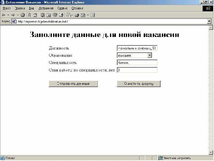 “Добавить" - запускает скрипт Addvakan.cgi;