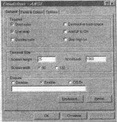 Наиболее широко используется формат символа, включающий в себя 8 бит данных и 1 столовый бит без использования проверки (8N1). Значения соответствующих параметров для данного формата в Windows'95 показаны на рис. 13.2.