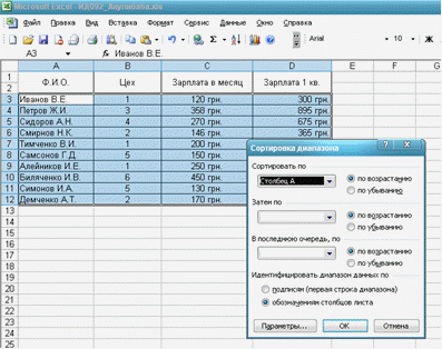 Ф.И.О. - Цех – Зарплата в месяц – зарплата 1 кв.