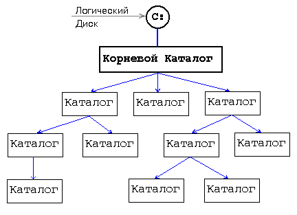 MS DOS поддерживает иерархическую структуру каталогов(древообразную), см. рис.6.