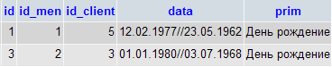 $const=«SELECT client.id, form_sob.form, client.fio, client.otv, client.ur_adr, client.fiz_adr, client.tel, vid_doc.vid