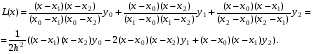 Пусть та же функция может быть аппроксимирована интерполяционным многочленом Лагранжа. Рассмотрим интерполяционный многочлен Лагранжа для случая трёх узлов интерполяции (n=2):
