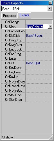 TButton позволяет выполнить какие-либо действия при нажатии кнопки во время выполнения программы. В Delphi все делается очень просто. Поместив TButton на форму, Вы по двойному щелчку можете создать заготовку обработчика события нажатия кнопки. Далее нужно заполнить заготовку кодом: