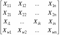 где w – число объектов; n – число признаков; ik – значение признака k для объекта i.