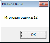 206.sRes:= 'Итоговая оценка: '+FloatToStr (Ratio*12/ln);