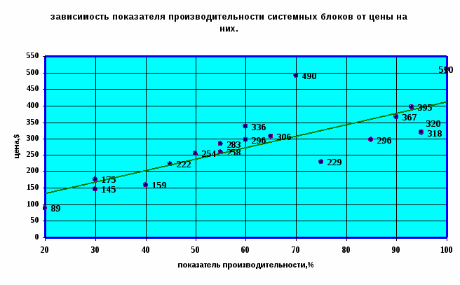 После получения показателей производительности всех анализируемых операционных систем, можно построить график зависимости этих показателей от цены на эти системы рис.3.5 .