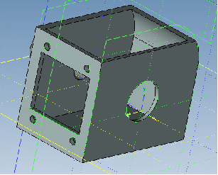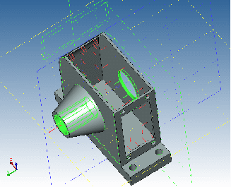 Для добавления заготовки, из которой будет изготавливаться (фрезерованием) деталь, будем использовать автоматический способ ее создания. Для этого выберем на главной инструментальной панели EdgeCam кнопку Auto-Stock. Переключать режим отображения заготовки с полупрозрачного на каркасный и обратно можно с помощью команды Toggle Stock. Результат показан на рис. 8.2.
