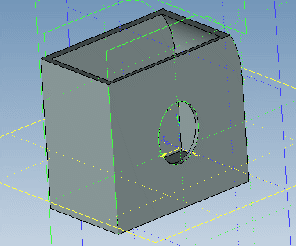 Далее необходимо оформить верхнюю часть детали. Она должна быть открытой. Для этого на левой боковой грани чертим прямоугольник и , произведя его выталкивание, получаем следующую фигуру (рис. 2.8). Этот созданный параллелепипед отнимаем от исходной детали с помощью Булевой операции. В итоге получаем полую конфигурацию, открытую сверху (рис. 2.9).