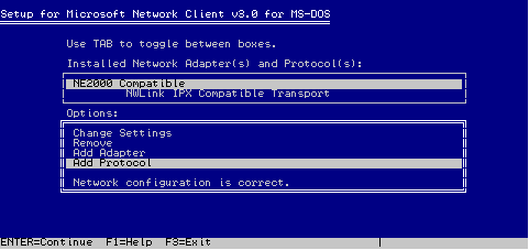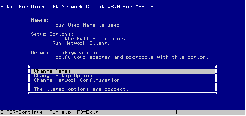 Я установил систему Microsoft Network Client version 3.0 for MS-DOS, и обновил её до сервера. С её помощью можно создавать одноранговые сети из рабочих станций MS-DOS.