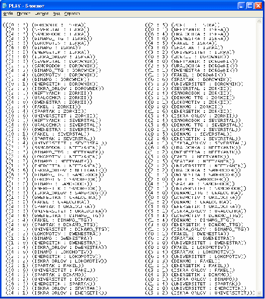 Целью данной курсовой работы является ЛИСП-реализация составления расписания встреч участников соревнования.