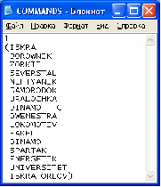 ; списком комманд участников