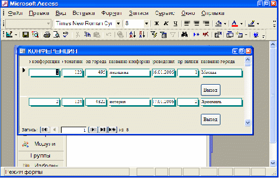 Третья форма (Рисунок 7.3) «Конференция»: