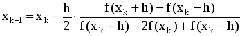 В этом методе вычисляется значение функции сразу в трех близлежащих точках , , , где h – малое число. Через эти три точки проводится интерполяционная парабола: