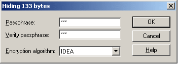 Перетаскиваем файл предназначенный для скрытия на окно. Вводим пароль и выбираем алгоритм шифрования